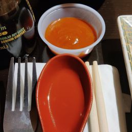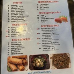 Soup and salad came out normal as usual the rolls were very good. First time trying both. Asked for 1/2 rice and 1/2 noodle but only received rice. Service was great. The waitress smiled today for the first time. The smell in the restaurant is a little weird. Great prices and amazing lunch deals