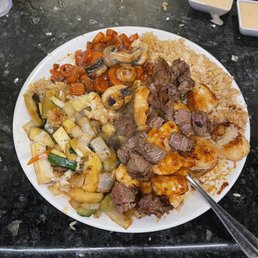 I was looking for a quick bite to eat close by after getting some supplies and happened to walk into Wasabi. The server said I could customize and substitute my meal with only rice or only noodles or even double up or replace veggies etc. That flexibility is why I decided to dine here and just got 2 bowls of soup instead of the salad. The price was also great at $13.95 The large sake is only $6.99 but the small bottle for $3.99 was more than enough for both of us. It was a decent meal. I give 4* bcos they charge 75 cents for yum yum sauce. I didn't order any yum yum sauce but on principle I don't like restaurants that nickel and dime patrons. That's like charging for ketchup with an order of fries or a burger.